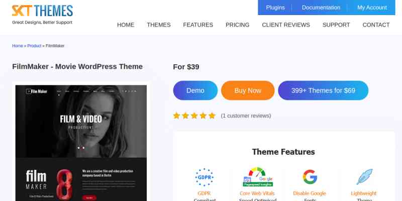 Film Maker Pro WordPress theme for video makers, films, screen visual displays, photographers, wedding videographers, event makers, journalists, screening, moving picture, celebrities, film stars and other types of websites. Simple, easy to use, flexible comes with page builder. Multilingual and SEO friendly. Demo: https://www.sktperfectdemo.com/demos/filmmaker/