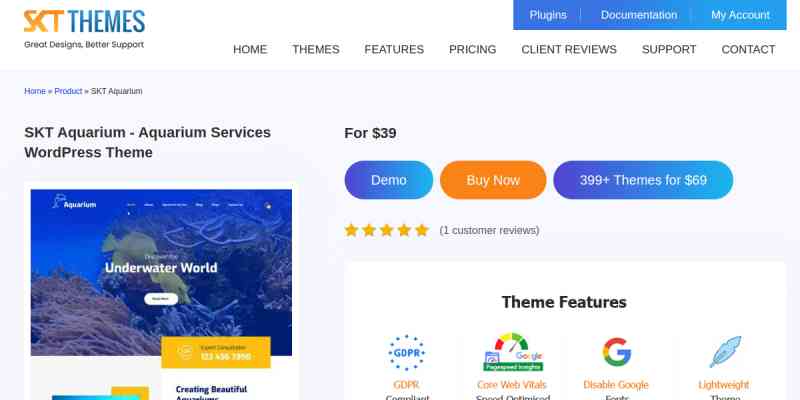 Aquarium is a aqua based template suitable for fish aquarium, pet services, pet food, pet accessories store, dog cat shampoos and other services like pet keeping, cleaning, pet care etc. Demo: https://sktperfectdemo.com/themepack/aquarium/