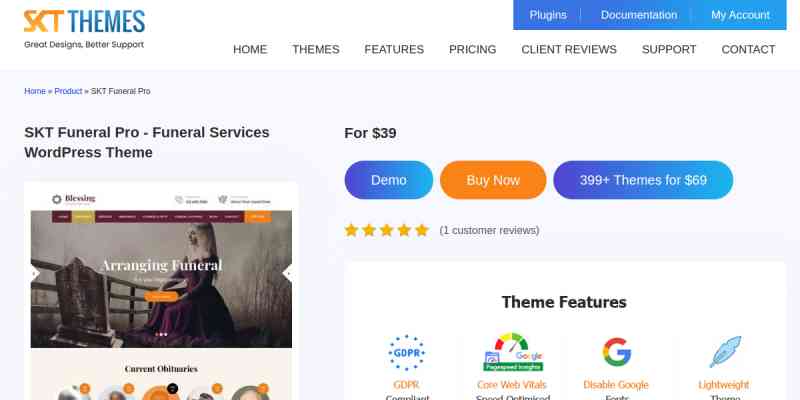 - Original Product - We downloaded SKT Funeral Pro directly from the official author.