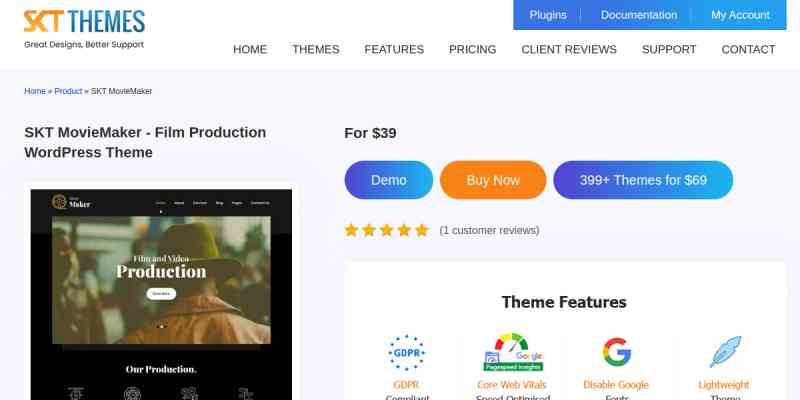 SKT Movie Maker is a film and movie maker based theme built on top of Elementor. Demo: https://sktperfectdemo.com/themepack/moviemaker/
